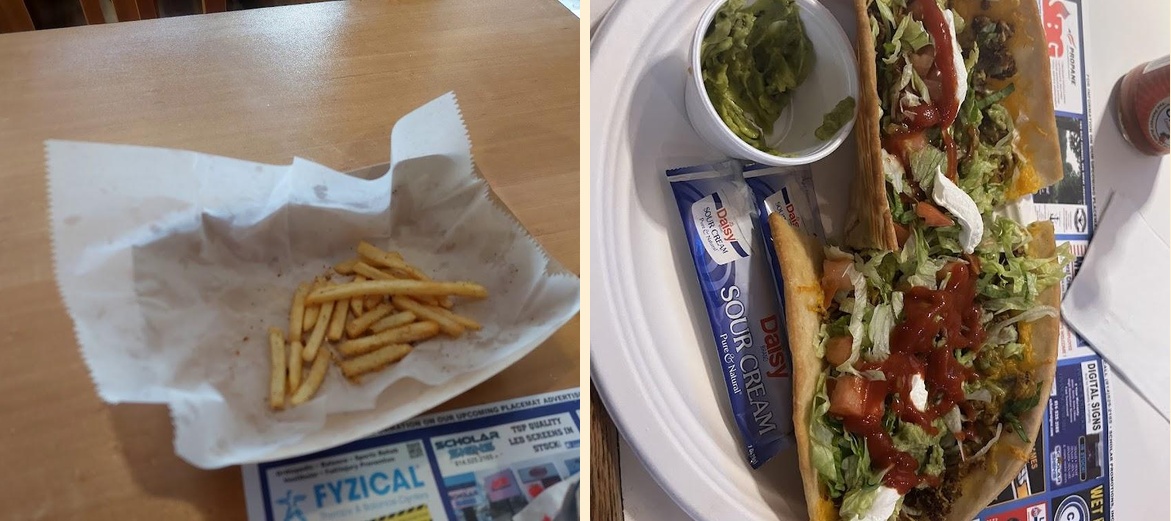 The massive tacos are a crowd favorite, known for their size and flavor. Customers rave about the Buffalo chicken taco, which offers a perfect balance of spice and satisfaction.